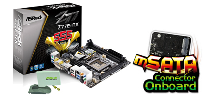 Маленький размер, большие возможности. ASRock Z77E-ITX — великолепная плата с массой полезных функций. На плате присутствует разъем mSATA, который может быть использован для подключения SSD. В тандеме с HDD твердотельный накопитель позволяет пользователям активировать технологию кэширования данных Intel Smart Response. Плата комплектуется эксклюзивным модулем с поддержкой Wi-Fi 802.11 b/g/n. С его помощью пользователи могут легко организовать беспроводную связь.