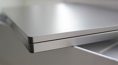 Первое, что бросается в глаза при знакомстве с новым хромбуком, - его алюминиевый экстерьер. Samsung насмотрелся на «яблочный» MacBook Pro, который давно стал эталоном солидности для всех. В некотором роде, дизайнерам Pixel удалось переплюнуть американских конкурентов. Его прямые углы и железобетонная прочность настолько суровы, что есть риск заработать трудовые мозоли во время набора текста и утомить запястья.