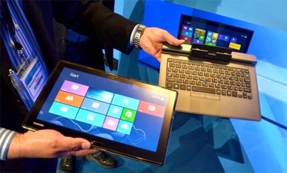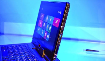 На выставке IDF 2013 в Пекине, Toshiba показала свою последнюю новинку - ультрабук Portege Z10t. Его можно использовать как планшет или как ноутбук, присоединив клавиатуру с подсветкой. Этот трансформер с диагональю сенсорного экрана 10 дюймов - первое гибридное устройство от Toshiba.