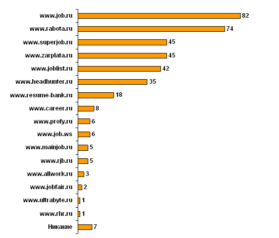 Оказалось, что службами jobfair.ru, ultrabyte.ru и rhr.ru не пользуется ни один респондент.