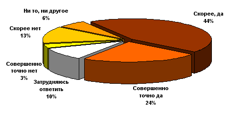 Более чем две трети участников опроса в будущем для поиска работы намерены пользоваться специализированными службами в Интернете. Из них около половины интервьюируемых (44%) на заданный вопрос ответили: «Скорее, да», каждый четвертый решил, что точно будет искать работу в сети. 16% оказались не готовыми прибегать к подобным способам. 6% не выбрали ни то, ни другое.