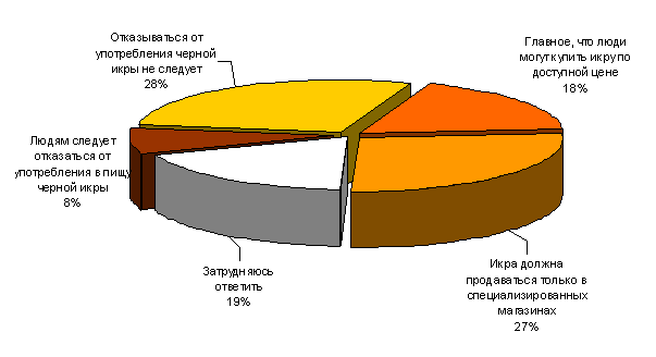 Ромир продолжает публиковать мнения россиян по поводу употребления черной икры, собранных специально для Всемирного фонда дикой природы (WWF). Более четверти участников исследования (28%) уверены, что отказываться от покупки данного продукта не следует, и что государство обязано обеспечить контроль поступления на рынок легальной икры. 27% опрошенных предпочитают, чтобы деликатес продавался в специализированных магазинах. Для 18% россиян важно, чтобы люди в принципе могли позволить себе купить черную икру. Лишь 8% респондентов заявили, что стоит отказаться от употребления в пищу осетровой икры.