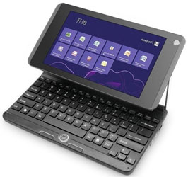На первый взгляд, система выглядит как обычный маленький ноутбук. Но. Под дисплеем находятся петли, с их помощью можно повернуть экран на 180 градусов. После этого закрыть крышку и использовать как планшет. Компьютер имеет QWERTY-клавиатуру, вместо тачпада под ней - небольшая оптическая мышь и две кнопки управления. И, конечно, сенсорное управление на дисплее никто не отменял. Управляется трансформер ОС Windows 8.