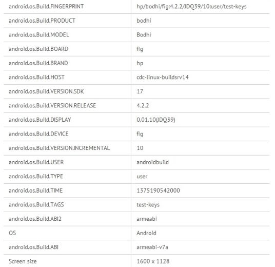 Похоже, что HP собирается выпустить еще одно Android-устройство под кодовым именем «Bodhi». Сегодня его характеристики были опубликованы на сайте GFXbench.com, но вскоре были удалены. Однако, скриншоты по-прежнему можно найти в открытом доступе на множестве различных сайтов, приводим их и мы.