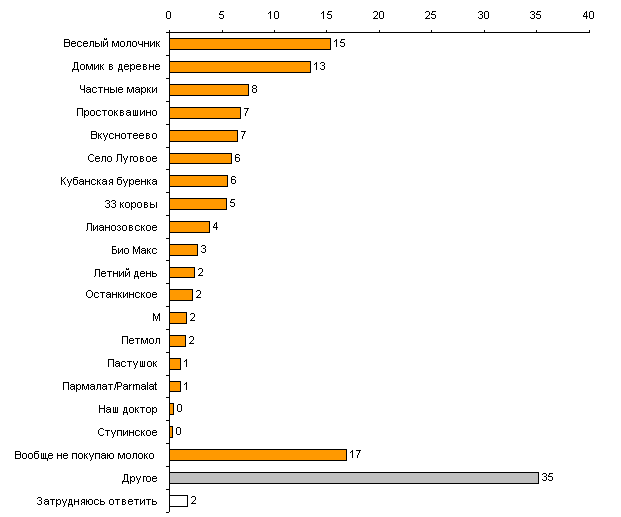 Вопрос: Молоко каких марок Вы обычно покупаете? (Респонденты могли указывать несколько вариантов ответа)