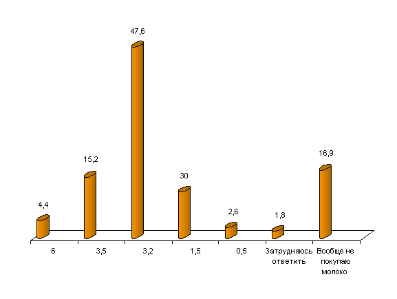 Вопрос: Молоко какой жирности Вы чаще всего покупаете? (Респонденты могли указывать несколько вариантов ответа)