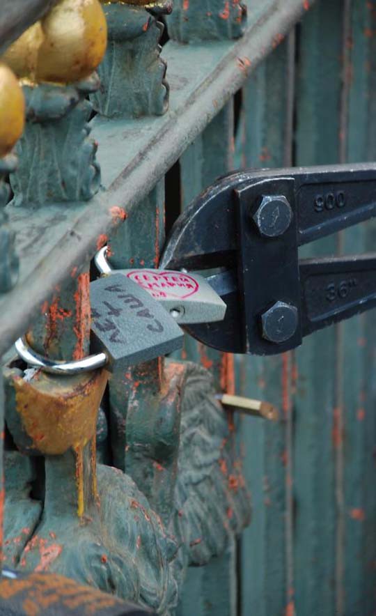 В свое время власти Москвы также как сегодня мэрия Парижа запретили вешать «свадебные замки» на мосту, поскольку опасались, что кованые решетки не выдержат нагрузки. Борьба с влюблёнными парами шла в течение нескольких лет. И вот чиновники нашли оригинальное решение – они «высадили» на «Мосту Любви» специальные металлические деревья. Как только они заполняются замками, их переносят на Болотную площадь и устанавливают вдоль набережной.